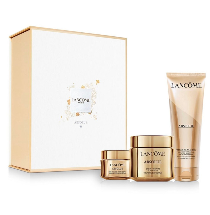 پک مراقبت از پوست لانکوم: کرم دور چشم ضد پیری ابسولو- ژل پاک کننده ابسولو-کرم نرم احیا کننده و روشن کننده ابسولو