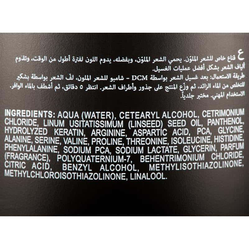 ماسک DCM مخصوص موهای رنگشده از محو شدن رنگ مو جلوگیری میکند و ماندگاری آن را به میزان قابل توجهی افزایش میدهد. این ماسک مو را نرمتر و حالتپذیرتر میکند، شانه کردن را آسانتر میکند و از مو در برابر گرمای سشوار محافظت میکند. فرمول این ماسک فاقد پارابن و رنگدانههای مصنوعی است و با کراتین هیدرولیز شده، روغن بذر کتان، کمپلکس اسید آمینه و پروویتامین B5 غنی شده است.